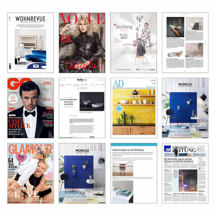WOHNREVUE, NZZ BELLEVUE, BLICKFANG, GLAMOUR, VOGUE, AD, MONOQI, GQ & mehr